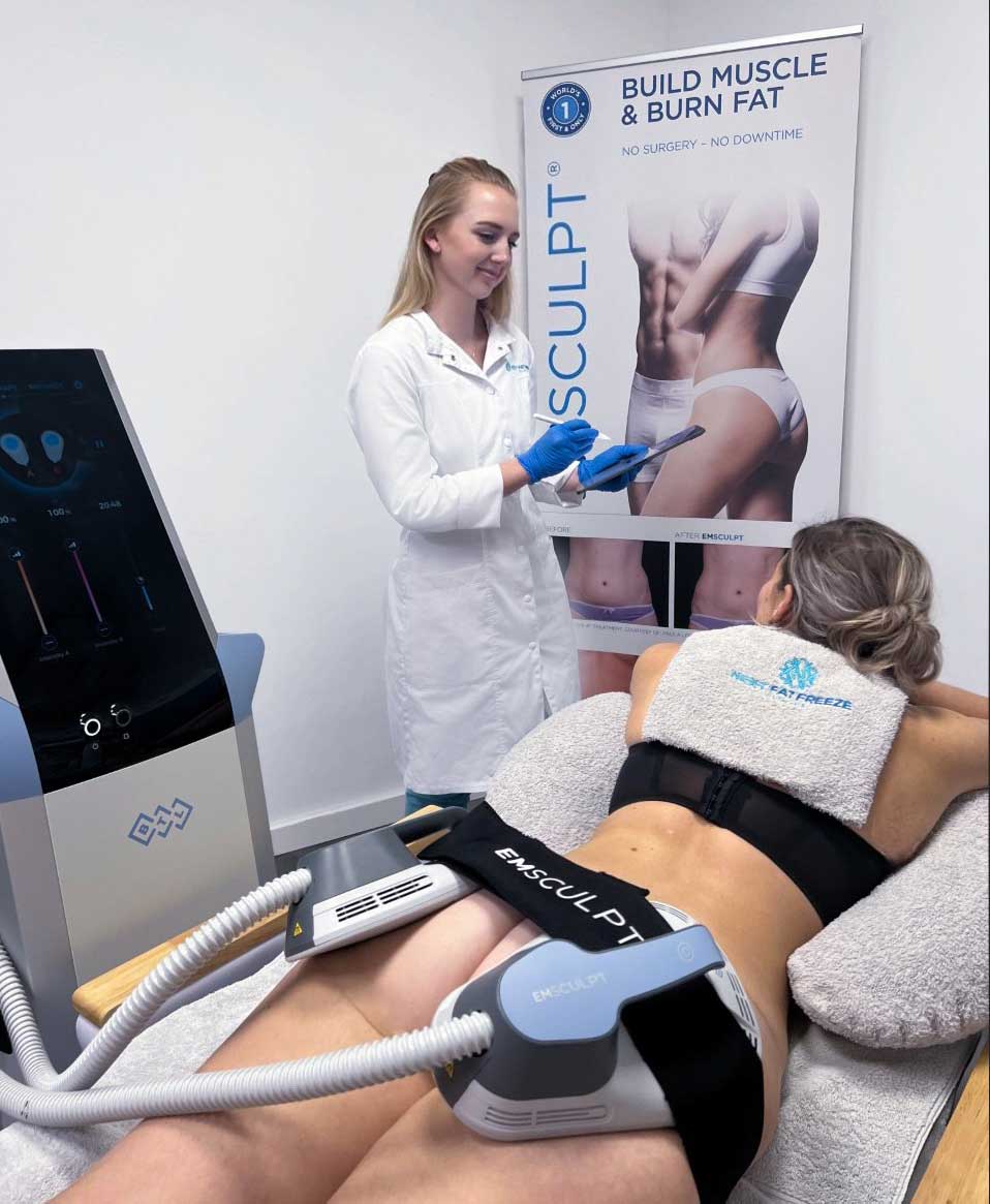 EMsculpt est une technologie innovante qui contracte vos muscles à haute intensité grâce aux ondes HIFEM. Résultat : plus de fermeté, plus de tonus et une silhouette redessinée, sans effort ni douleur.